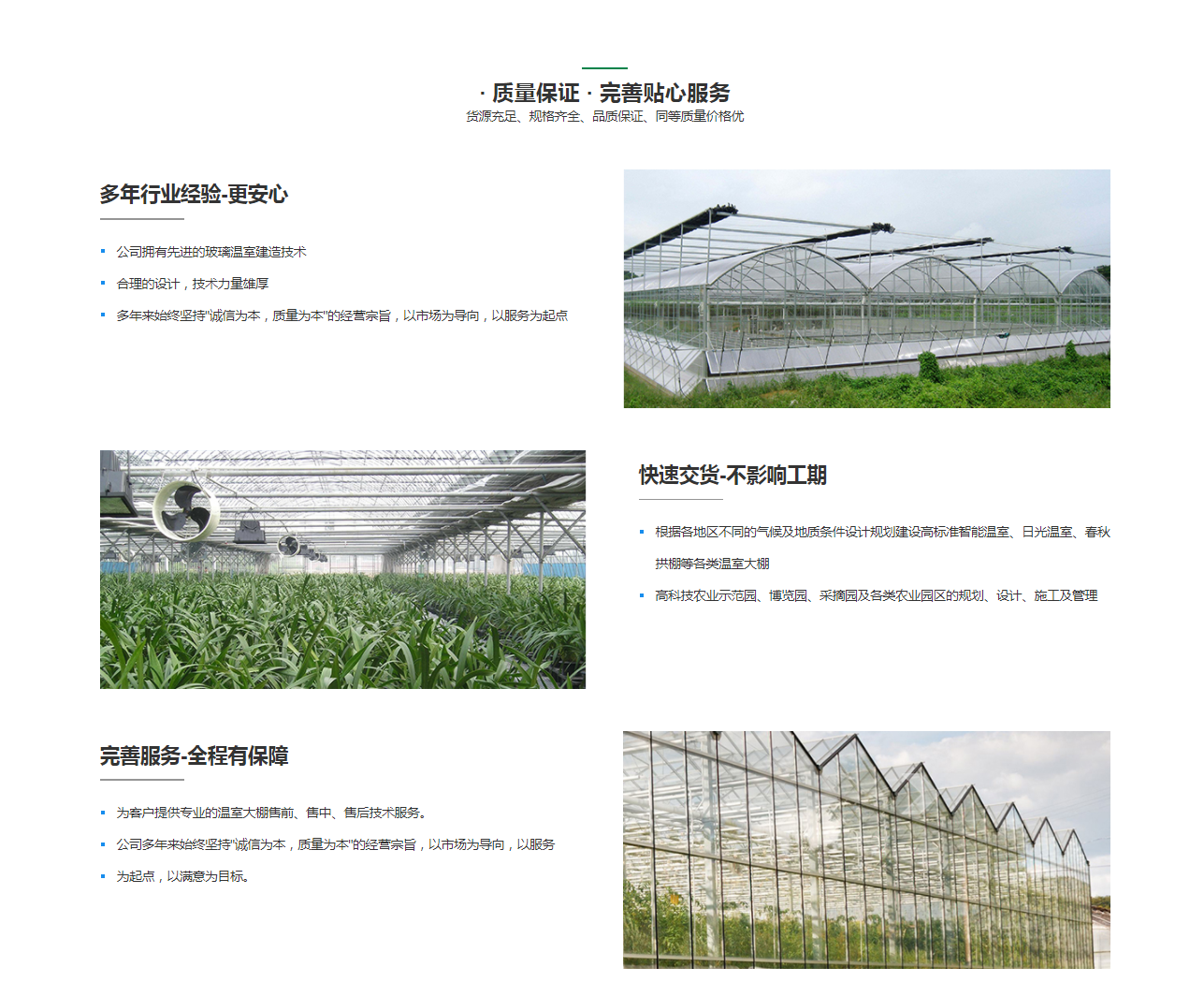 無錫永睿鴻溫室工程有限公司自創辦以來,已在多個城市地區承建了許多的農業示范園區、花卉苗木種植園、家禽水產養殖區、生態餐廳和旅游觀光園等。并以“質量過硬、價格合理、服務周到”贏得了廣大用戶的信賴?! 」局鳡I產品:玻璃溫室、溫室工程、連棟大棚、蔬菜大棚、溫室大棚、花卉大棚、養殖大棚、大棚鋼管、外遮陽大棚、外遮陽連棟大棚等?! 」井a品廣泛用于農業生產、水產養殖、食用菌培養、花卉生產、林業種苗、畜牧等行業,并配有各種規格可供選擇,還可根據客戶要求提供特制結構?! ∥夜緭碛胸S富的施工經驗和完善的售后服務,秉承著團隊精神的和始終堅持誠信做人、認真做事、科學管理,不斷開拓創新,超越自我,提升綜合素質的理念,同時公司擁有技術精湛,經驗豐富的技術團隊,將竭誠為各界朋友提供農業設施的設計及相關服務?! 」疽回瀳猿帧捌焚|保證、用戶至上,誠信服務”的宗旨,憑借著高質量的產品,良好的信譽,完善的服務,產品暢銷近三十多個省、市、自治區。歡迎來電咨詢!  Since its establishment, Wuxi yongruihong Greenhouse Engineering Co., Ltd. has undertaken to build many agricultural demonstration...